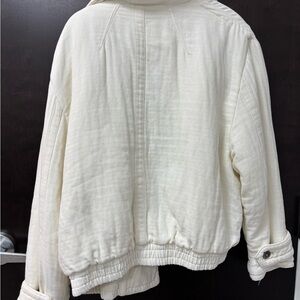 Stay warm and stylish with this cream jacket featuring a cozy faux fur collar. Perfect for layering in cooler weather.