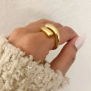 925 Sterling Silver Gold Chunky Bold Ring Statement Ring Large Wrap Ring
