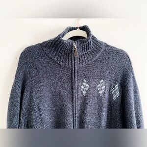 Vintage Arnold Palmer Men’s Wool Blend Full Zip Knit Cardigan, Navy Blue, Size M