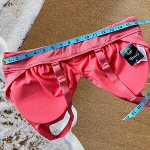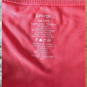 Make a splash in style with this NWT George Plus 2-piece bikini in the stunning Coral colour with gold metal adjusters! In size XXL/2X, this bikini is designed to flatter and fit beautifully. The vibrant Coral colour and intricate pattern on the fabric make this bikini a standout piece for your swimwear collection. The gold metal adjusters add a touch of elegance and sophistication to the design.