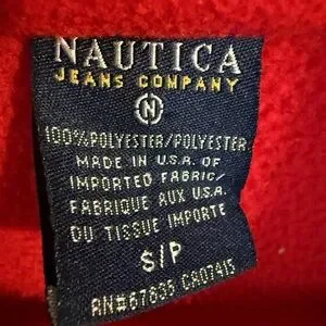 Vibrant red fleece pullover by Nautica. Features a classic logo patch.
