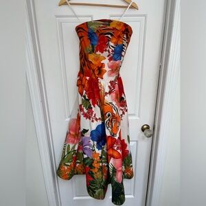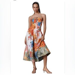 NWT retail$245 sizeS MAEVE (Reclectic)Strapless floral/tiger printed midi dress.
