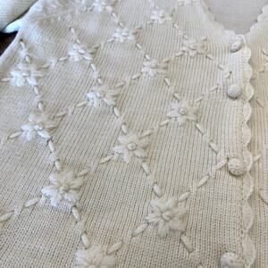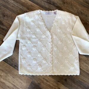 Elegant crew neck sweater. Features delicate knit pattern. Soft and comfortable fabric.