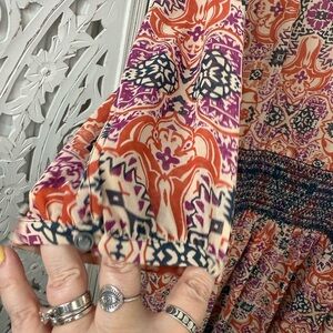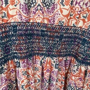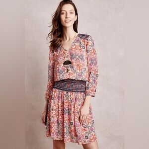 Anthropologie Vanessa Virginia Daytripper Dress in excellent condition - gently worn with no flaws. Pullover style, smocked waist, lightweight fabric but colors you can style year round! Really pretty! Length is more mini.