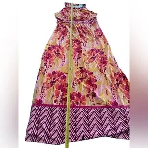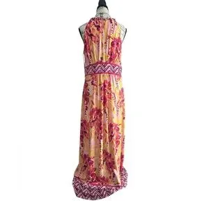 Wisp Tropical Floral Halter Maxi Dress Pink Yellow Braided Strap NWT 12 Summer