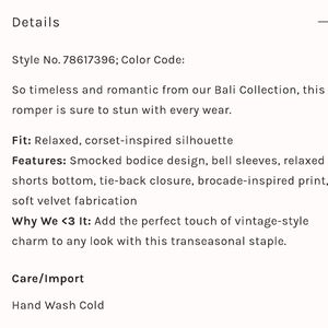Free People Tightrope Romper Bali Collection Velvet Size XS
