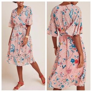 Anthropologie Maeve Adelaide pink floral Wrap Dress 23820