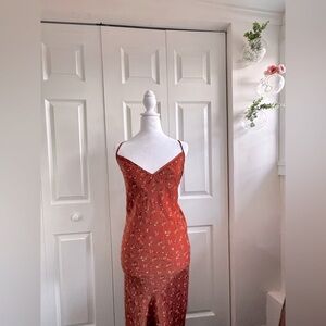 Elevate your style with this elegant rust floral print skirt. Perfect for any occasion, this skirt offers both comfort and fashion.