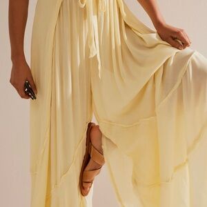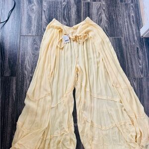 Flowy and so pretty. these are very lightweight and sheer, generous fit. Color is banana cream.