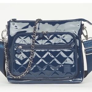 NWOT IHKWIP The Sensational Chain Shoulder Bag W/ Crossbody Strap — Patent Navy