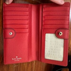 Elegant Kate Spade wallet in a striking red hue. Perfect for adding a pop of color.