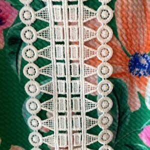 Eliza J | Tropical Floral Shift Dress Green Lace Trim Size 4