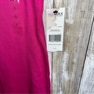 Miley Cyrus x Max Azria, Y2K Tank Top, Vintage Miley Cyrus, Neon Pink Ribbed Tank, Max Azria Walmart Collection, 2000s Graphic Tank, Fuchsia Pink Camisole, Ribbed Racerback Tank, Lime Green Contrast Trim, Early 2010s Fashion, Disney Star Era, Pop Star Aesthetic, McBling Style, Deadstock, Indie