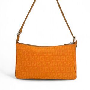 Vintage FENDI Orange Monogram FF Zucca Logo Canvas Pochette Shoulder Bag…