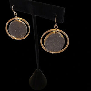 Grey Crystal Stone drop earrings outlined in Gold by Simply Noelle