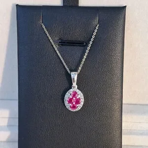Natural Ruby & Natural White Zircon Style Necklace In 925 Sterling Silver