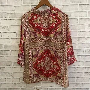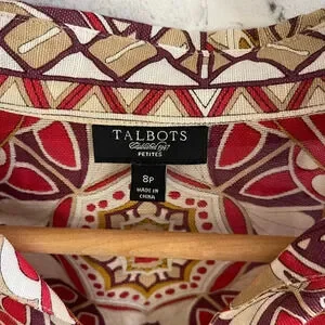 Women’s. Talbots. Silk/linen blend. Medallion graphic popover tunic blouse. Preowned excellent condition. No stains/tears. Size 8P.