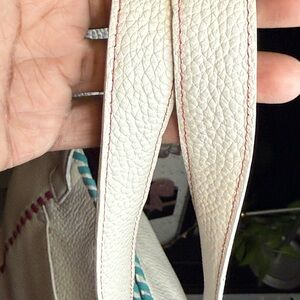 Brighton Leather Shoulder Bag – White Multicolor Stitch Detail