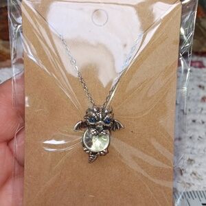 🆕️LAST ONE!🌹ADORABLE BABY DRAGON CLUTCHING PRECIOUS GEM NECKLACE GIFT BOXED