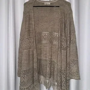 Style & Co. Taupe Open-Front Cardigan with Fringe women’s 3x plus boho hippie