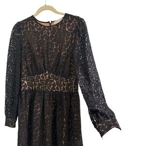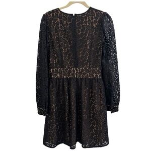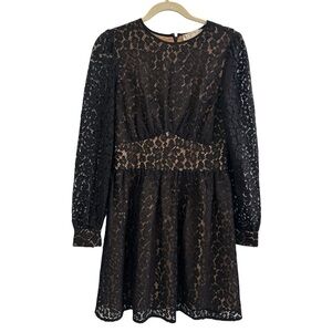 Michael Kors Leopard Corded Lace slong sleeves black Mini Dress