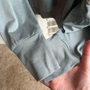 Like new condition, light blue Vuori long sleeve tee shirt. Only worn a couple of times, washed and hung up to dry. Size large, but fits more like a medium. I normally wear small or medium. Tags cut out for comfort. If you don't know Vuori sizing, you may want to try in a store before purchasing as this does not seem like a size large at all.