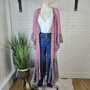 - Like New Condition Umgee Pink and Blue Floral Animal Print Duster Kimono