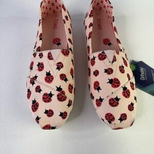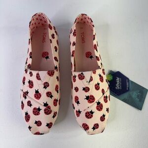Toms Womens Creole Pink Love Bugs Shoes Size 8 Lady Bug Print Slip On Canvas