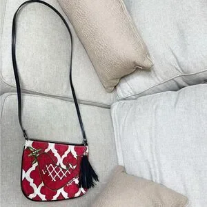 Brighton Bag Mini Crossbody Red Love Dove Canvas Pouch Long Strap Tassel Purse