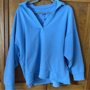 Cozy and stylish cornflower blue hoodie. Features a relaxed fit and V-neck design. Ideal for casual wear.