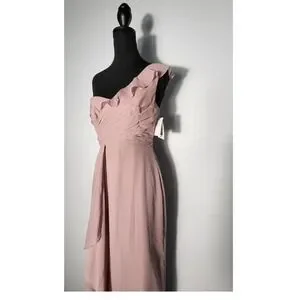 David's Bridal One Shoulder Chiffon Formal Dress with Cascading detail Size 2