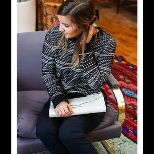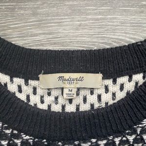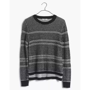 Madewell fineprint pullover sweater. Size medium. Color: black/white. A not-so-basic patterned sweater with contrast neckline and hem. For those times when solids just won't cut it (yeah, we have those days too.)