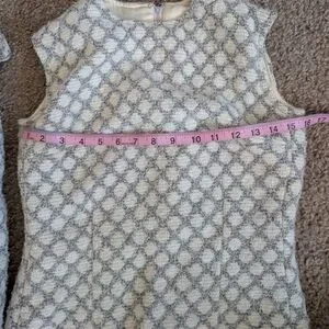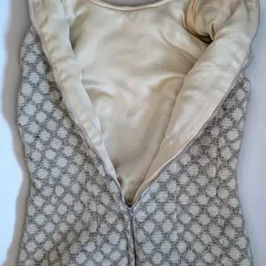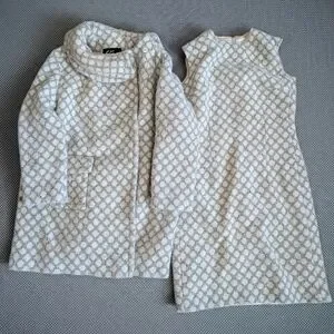 Elegant, Vintage Wool, Light Gray And Beige Patterned Women's Coat and Dress Set