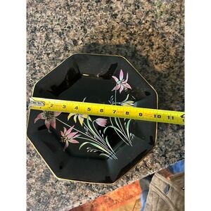 This is a vintage Seizan China "Zen" pattern octagonal platter or plate, featuring a black base with a gold rim and floral design.