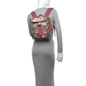Authentic GUCCI GG Supreme Monogram Blooms Small Single Buckle Backpack Beige/Mu