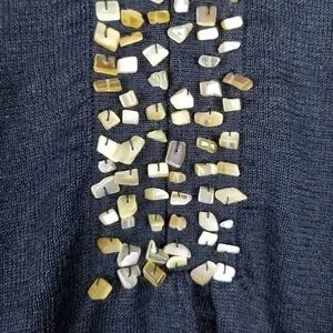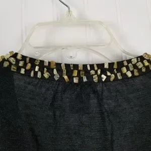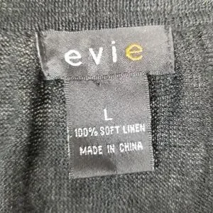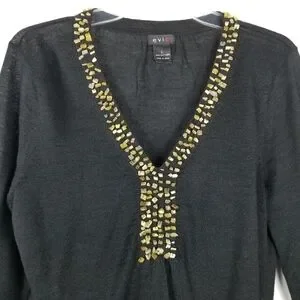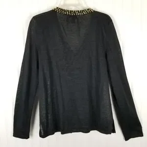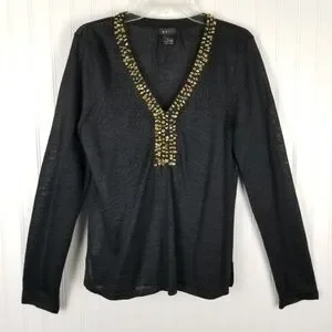 Evie Womens Soft Linen Long Sleeve V Neck Top Size L Black Embellished Neckline