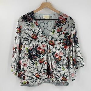 Anthropologie Maeve Umi Velvet Burnout Floral Faux Wrap Top S Feminine Oversized