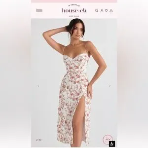 💐 NWT House of CB CHARLOTTE Rose Print Corset Midi Sundress