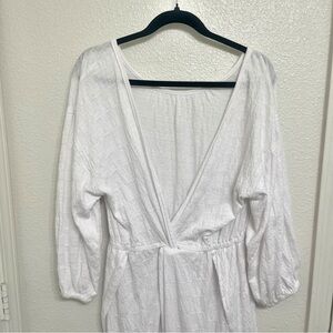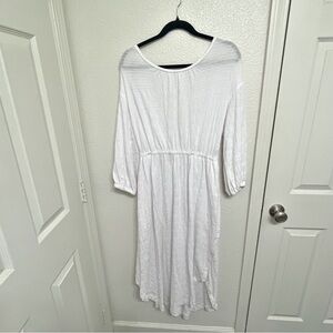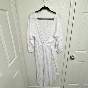 Free and effortless midi dress from our free-est collection featuring soft, textured fabrication with a scoop neck , exaggerated sleeves, and an exposed back with an empire waist silhouette.