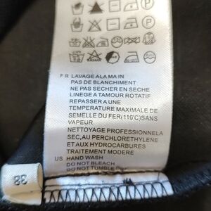 ** No Brand Tag. I believe size 38 is equivalent to a small. Refer to Measurements for fit.