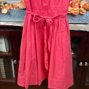 Maeve Anthropologie Coral 100% Cotton Swiss Dotted Belted Short Sleeve Dress 2