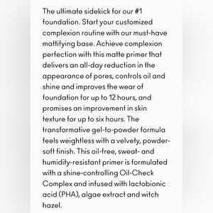 Achieve complexion perfection with this matte primer that delivers an all-day reduction in the appearance of pores, controls oil and shine and improves the wear of foundation for up to 12 hours, and promises an improvement in skin texture for up to six hours.