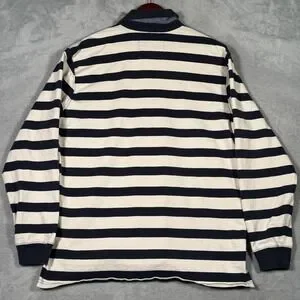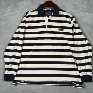 Up for sale is a - L.L.Bean Rugby Polo Shirt Mens Large Blue Stripe Long Sleeve Cotton Casual