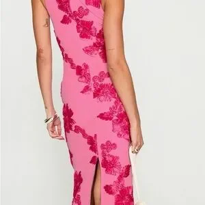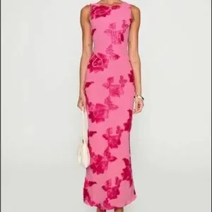Step out in style with this elegant pink floral maxi dress. Perfect for any occasion, this dress combines comfort and fashion effortlessly. Worn once. This dress is beautiful the flowers are raised on the dress.