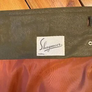 Boy oh boy what a fabulous mid-century find! I'm so excited to list this! I wish you could hold it and feel it, its quality through and through. It's a soft leather like material in a beautiful olive green color. It may very well be leather but can't claim that without knowing for sure. Shagmoor made high-end ladies coats 1950's-1970's and the quality of this coat is exceptional. The condition of this coat is exceptional. Double breasted (all buttons intact), decorative only buttons at the cuff, 2 front pockets. All Shagmoor coats are lined with either silk or satin and the lining in this coat appears to be satin. The photos may make you think that the lining is discolored, I have studied it in all sorts of different light and have come to the conclusion that its just the piece of fabric used for the lining. I would describe it as a lightweight coat. It is not sized but can say with a great deal of confidence that it is a medium and would fit like a size 8. It measures shoulder to shoulder across the back at 16", the underarm to underarm measurement, also across the back is 20". The overall length of this coat is 40" measuring from the top shoulder seam. The sleeve length is 23". Note: there is a bit of a "vintage" odor to it, if you choose there are a number of remedies for this. I'm confident you will be impressed with the quality and condition of this Shagmoor coat.