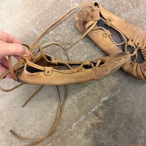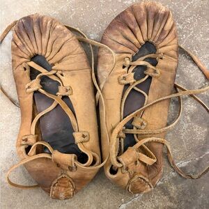 Vintage Tan Leather Women's Shoes lace up moccasins native american