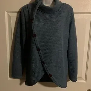 Great condition. The buttons is just for design. Shirt is a pull over. Assymetrrical design. Very fashionable. Measurements Approx: pit to pit 20 1/2 Sleeves 23 3/4 and length 27 1/2