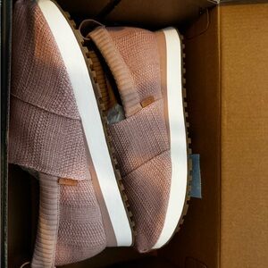 Chic mauve sneakers by Toms. Features a cozy knit texture. Ideal for everyday style. Brand new! Never worn.