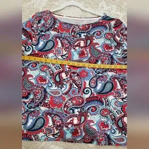 Talbots Women's Long Sleeve Paisley Top - Red, Blue, and Black