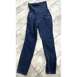 Indigo Blue Motherhood Maternity Jeans Size S Denim Dark Wash Belly Band Skinny